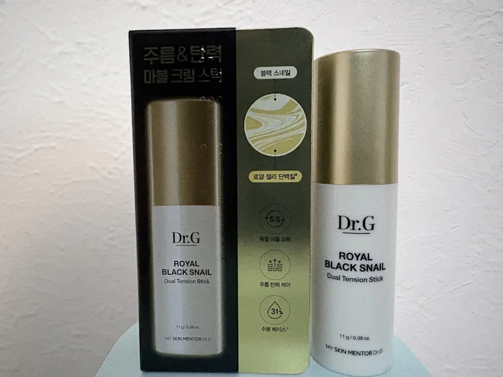 The Dr.G Royal Black Snail Dual Tension Stick is a unique anti-aging skincare product enriched with snail mucilage filtrate and royal jelly extracts, designed to stimulate collagen production and restore skin elasticity. Its non-sticky, moist solid cream formulation in a convenient stick form offers intensive care for wrinkles, making it ideal for targeted application.
